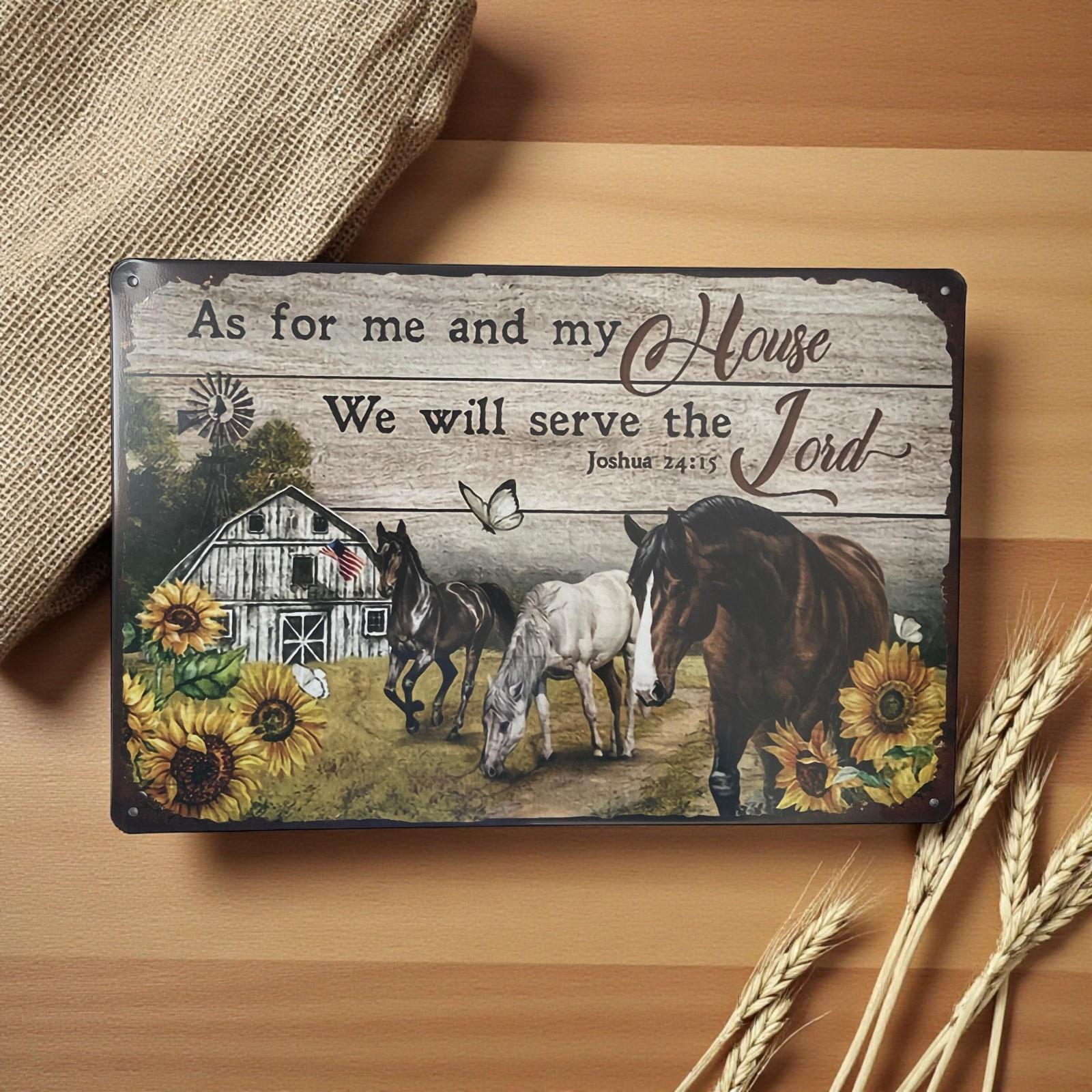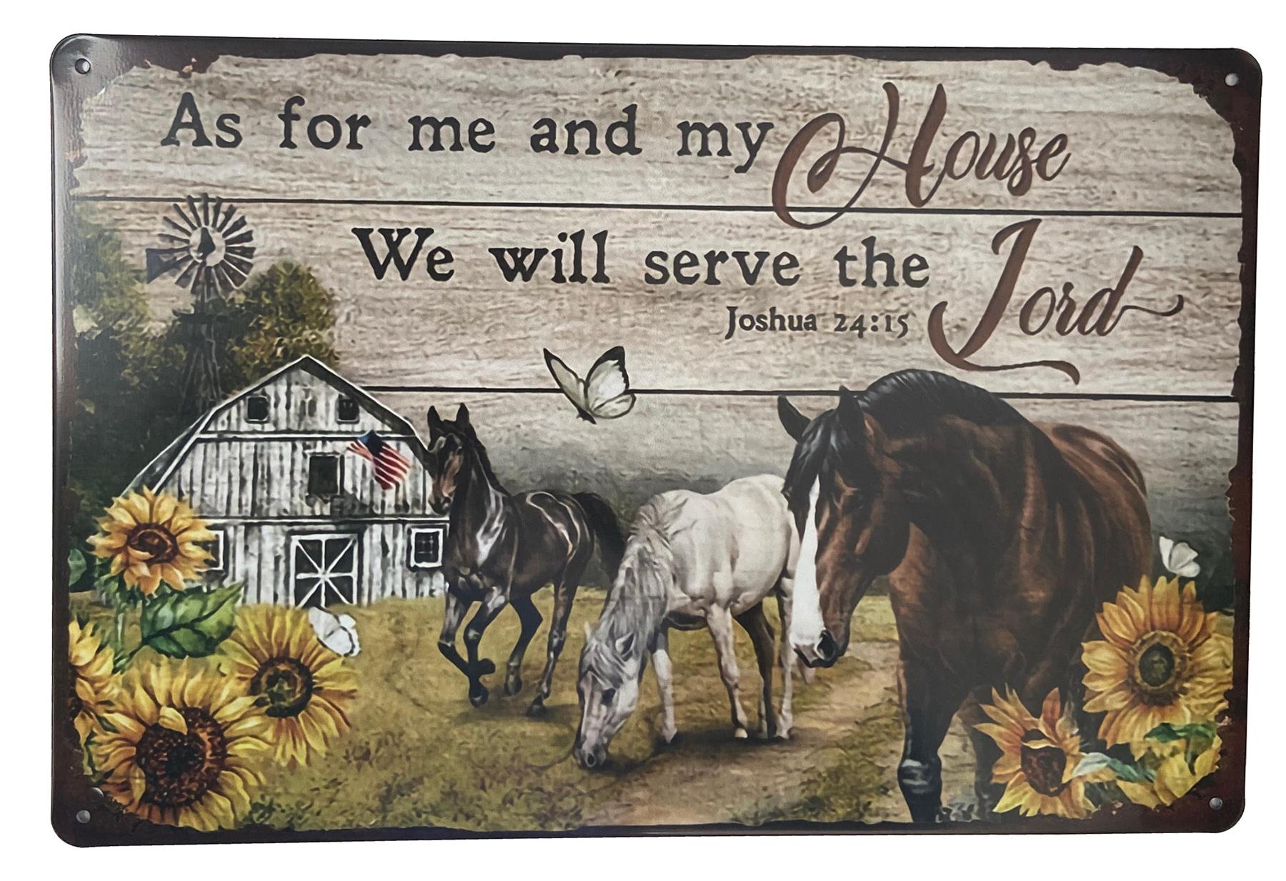 Christian Farmhouse Wall Art As For Me And My House Metal Sign 30 cm