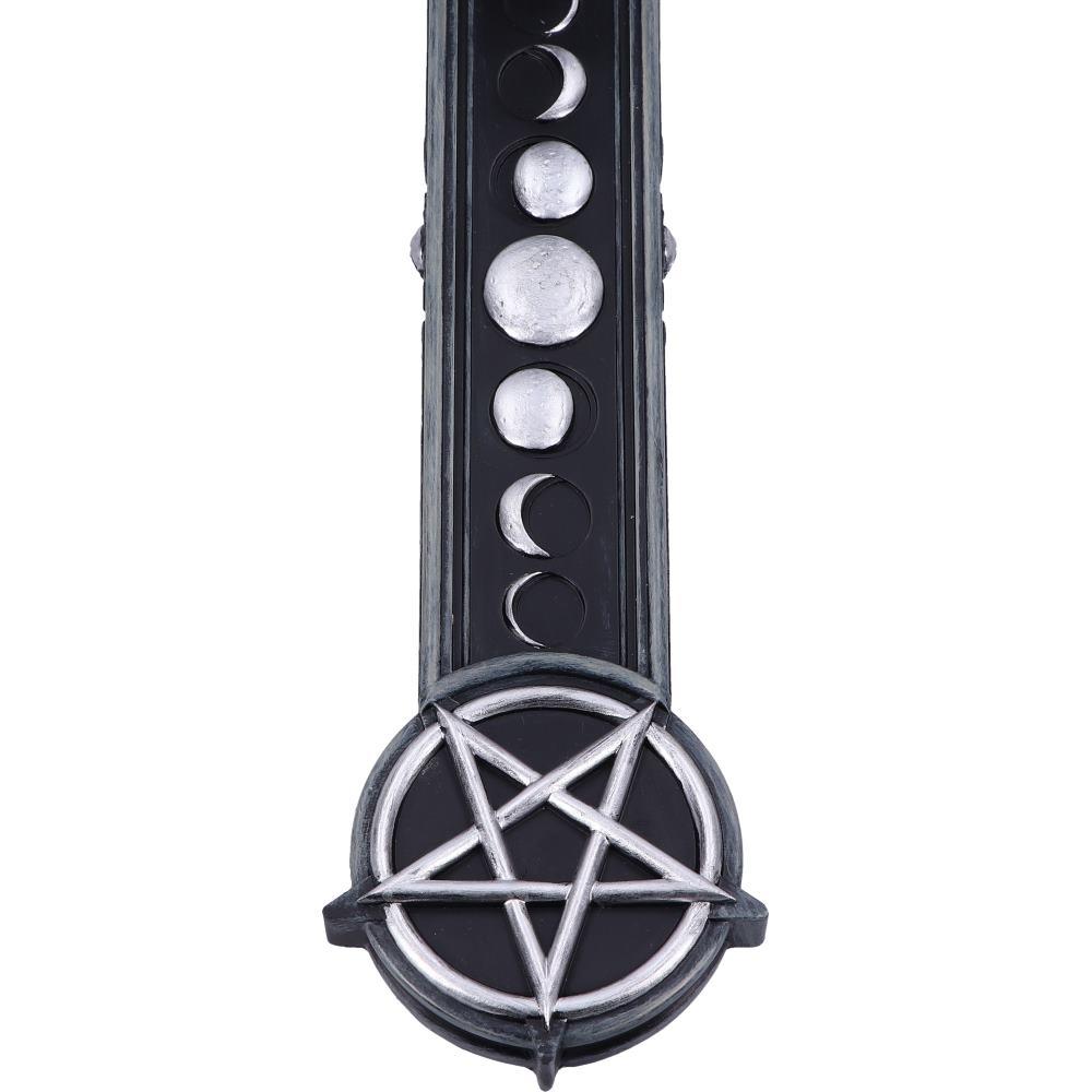 Meticulously cast in high-quality resin and finished in sleek black and silver tones, this incense holder brings together witchy vibes and functional style. The moon phases etched along the body enhance its mystical aesthetic — perfect for burning your favorite incense sticks during rituals, meditation, or simply to enchant your space.