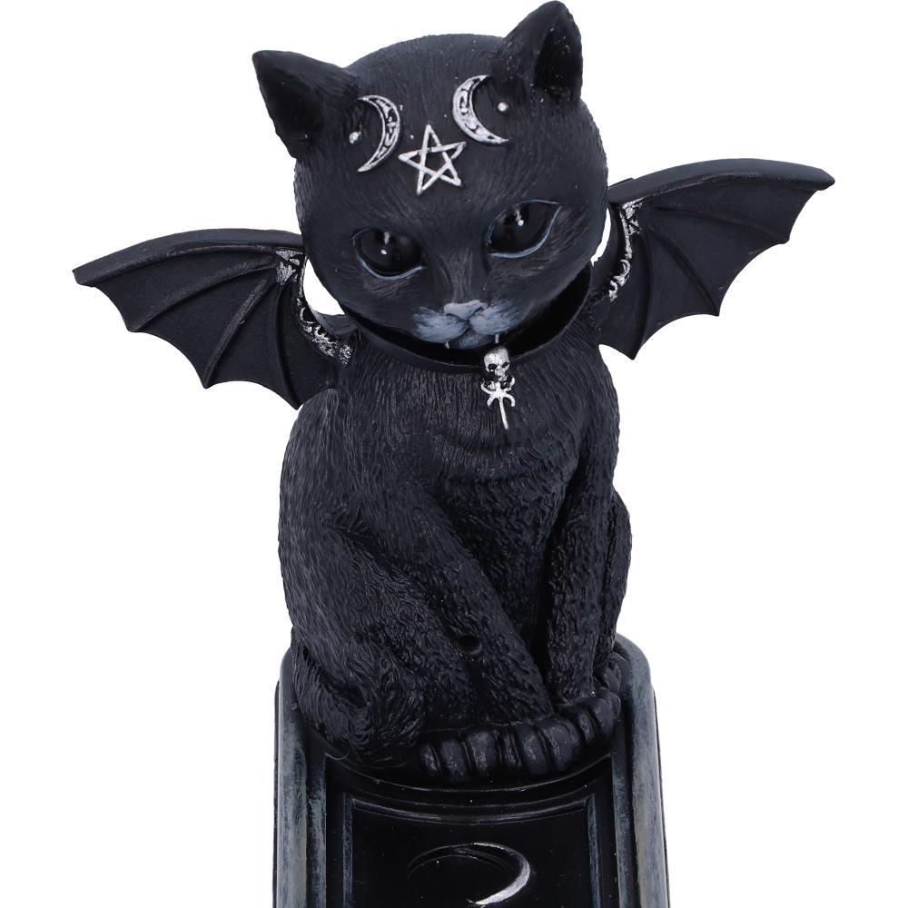 Invoke mystical charm and gothic cuteness with the Malpuss Cult Cutie Incense Holder by Nemesis Now. This spellbinding 24cm incense holder features the iconic Malpuss — a winged, vampiric bat-cat sitting proud beside a moon phase design and a powerful pentagram.