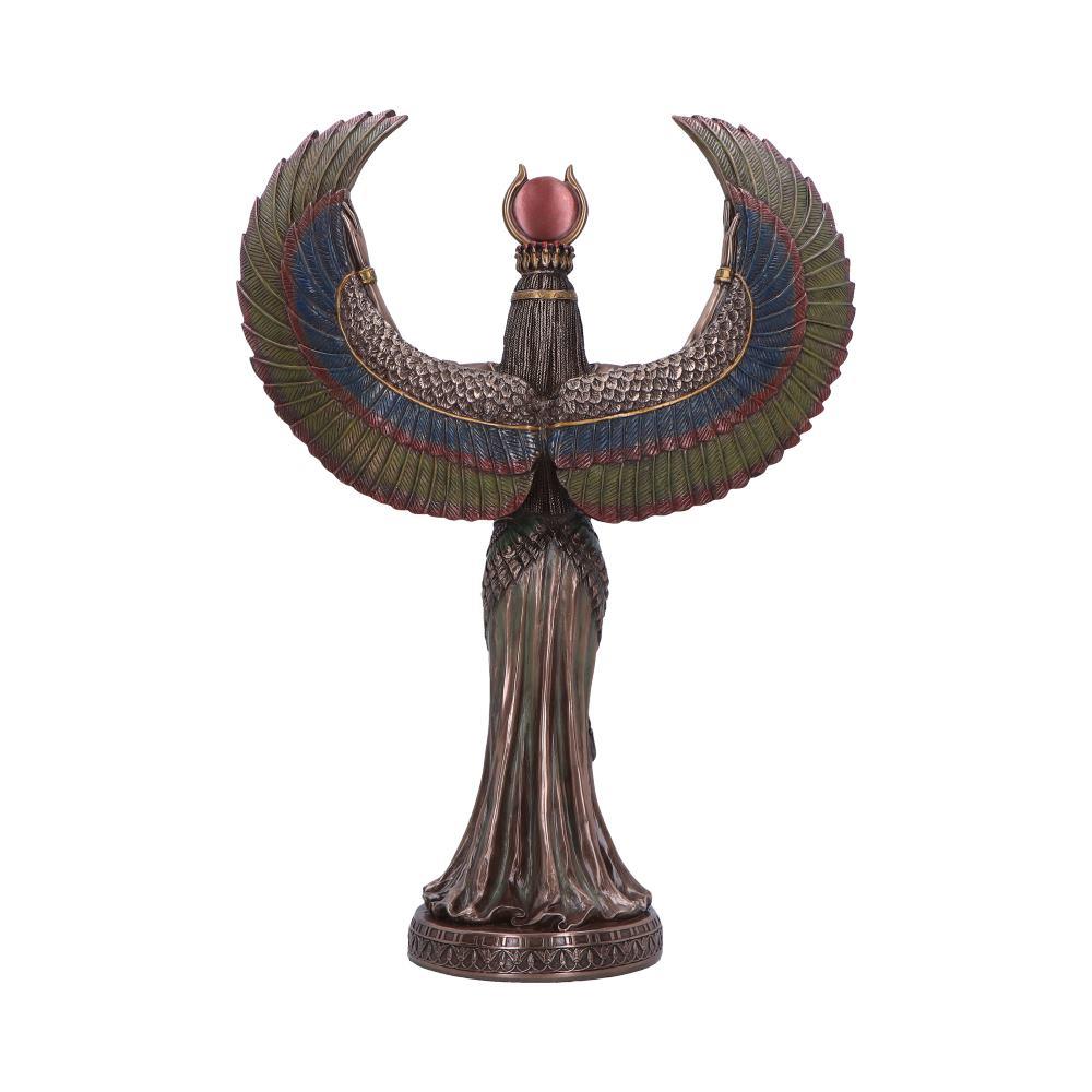 This exquisite piece captures Isis, the revered Egyptian goddess of magic, wisdom, and motherhood, with her wings spread wide in a pose symbolising divine protection.