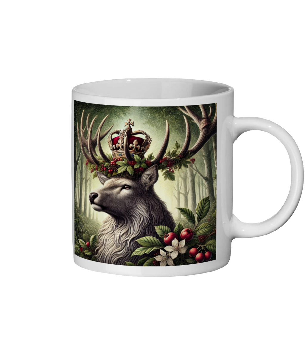 • Discover the elegance of nature with our Majestic Royal Stag Ceramic Mug. This 11 oz mug features a beautifully detailed illustration of a regal stag crowned with intricate foliage and berries, making it a perfect addition to your coffee or tea ritual.