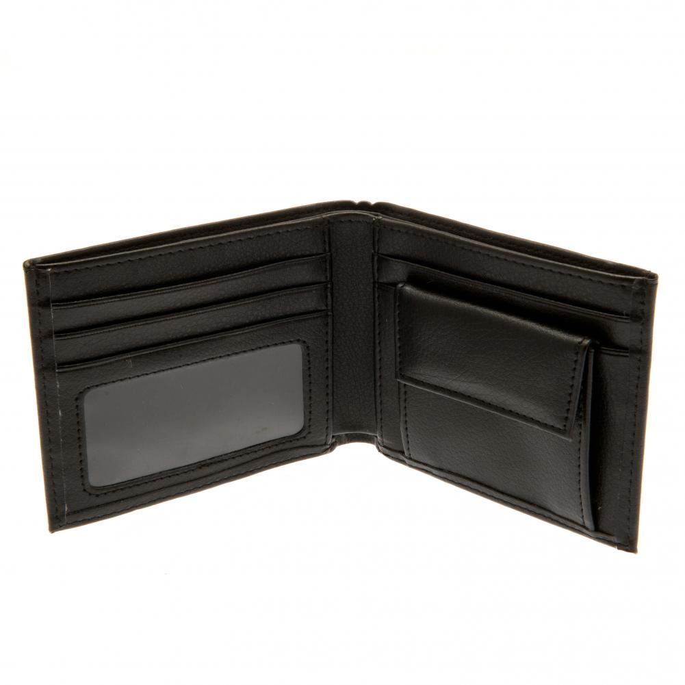 Black PU wallet featuring a large embroidered club crest.3 card slots, a window slot and 2 note pockets.Change pocket with secure stud fastener.2 additional compartments