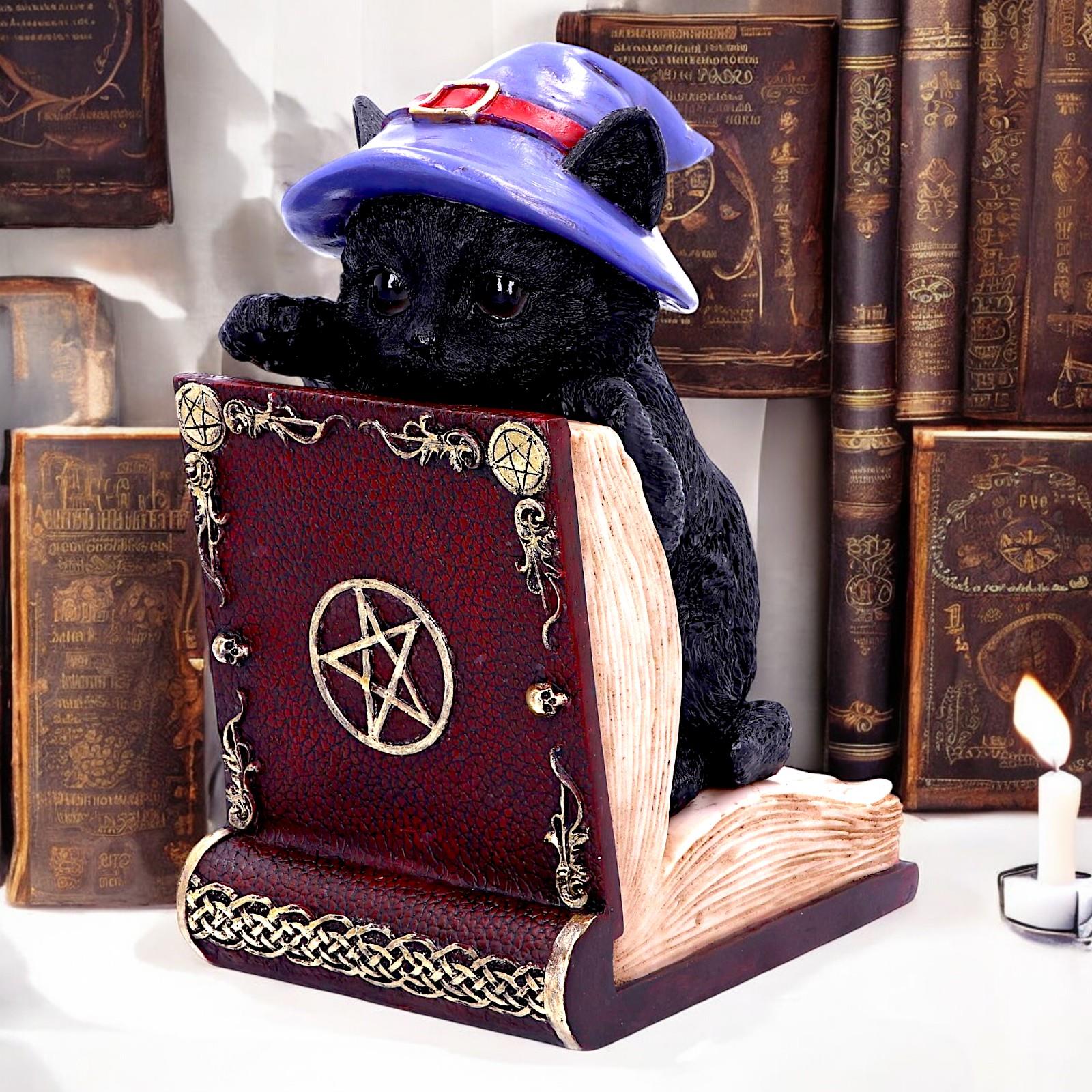 Witch Cat Bookend – Wiccan Altar Decor & Mystical Library Accessory