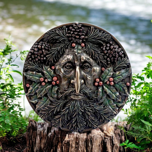 Winter Yule Green Man Wall Plaque - Resin Woodland Spirit Decor, Pagan Fantasy Art