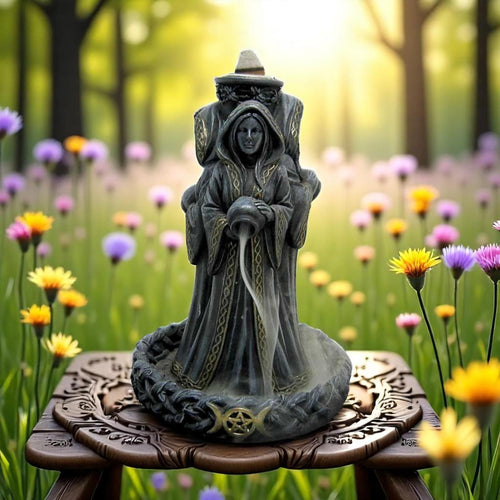 Triple Moon Goddess Incense Burner | Wiccan Backflow Resin Holder 15.5cm Witch Decor