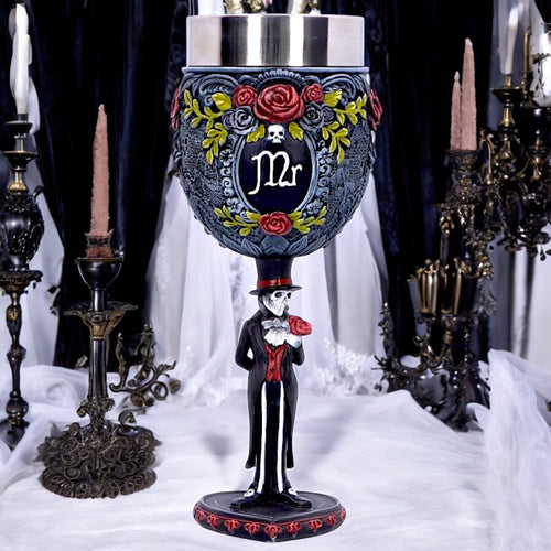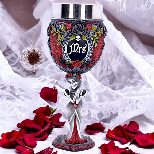 Mrs Skeleton Goblet Gothic Bride Chalice Day of the Dead macabre Art Decor