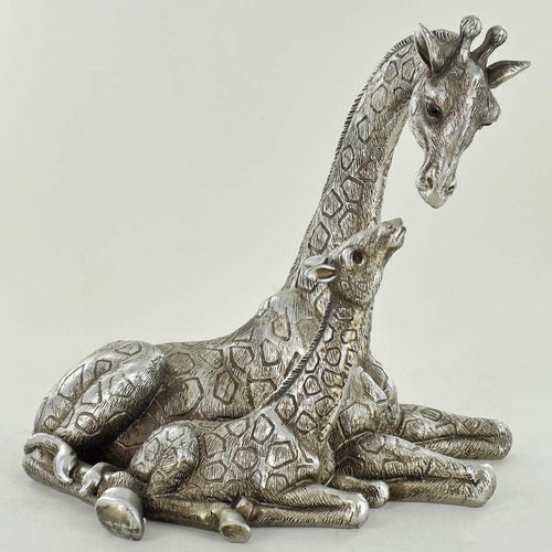 Mother and Baby Giraffe Antique Silver Sculpture Home Decoration Statue Figure