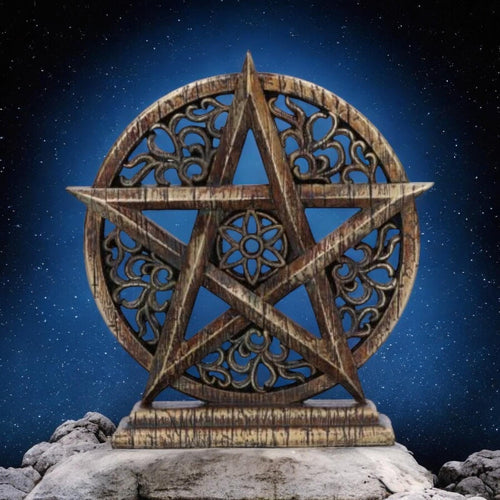 Intricate Dawn Pentagram Resin Statue 15cm - Wiccan Altar Decoration & Spiritual Giftware