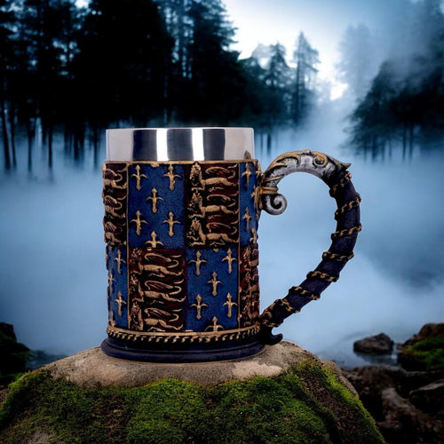 Fleur-De-Lys Lion Tankard 14 cm - Medieval Gothic Knight Mug, Historical Drinkware