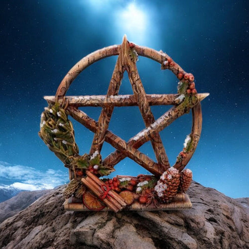 Yule Pentagram 16.5 cm - Wiccan Winter Decor, Hand-Painted Pagan Holiday Ornament