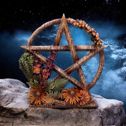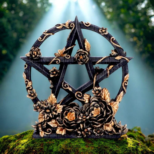 Floral Pentagram 16.5 cm - Gothic Wiccan Decor, Hand-Painted Pagan Ornament