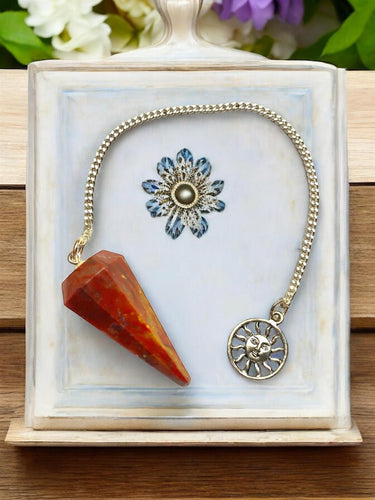 Mystical Bloodstone Pendulum Dowsing Tool with Radiant Sun Charm | Divination Aid | 23cm Chain