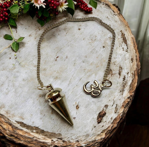 Bullet Shaped Divination Pendulum Dowser with OM Symbol Charm - Mystical Energy Tool - 20cm Chain