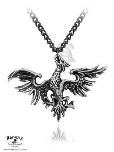 Vintage Alchemy Gothic Mettle Eagle Pendant Necklace - 6x4cm - Lead-Free Pewter with Chain - Intricately Detailed Gothic Jewellery