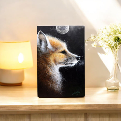 FOX IN MOON LIGHT Ceramic Art Tile by D.Finney | 30x20 cm Wall Hanging | Ready to Hang
