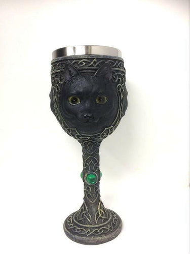 Lucky Black Cat Goblet Pagan Style Chalice Spellcast Witch Altar Decoration