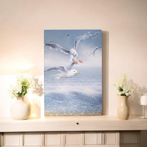 GULLS Ceramic Art Tile by D. Finney | 30x20 cm | Wall Hanging Decor | Seaside Nature Art in Gift Box