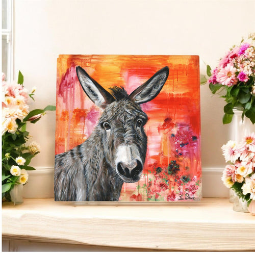Dave the Donkey Ceramic Art Tile by Pankhurst Gallery 20x20 cm – Wall Decor, Boxed & Ready to Hang