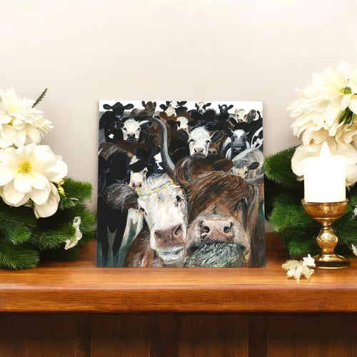 Cow Crowd Ceramic Art Tile by Pankhurst Gallery | 20x20 cm | Wall Hanging | Decorative Ceramic Tile | Boxed