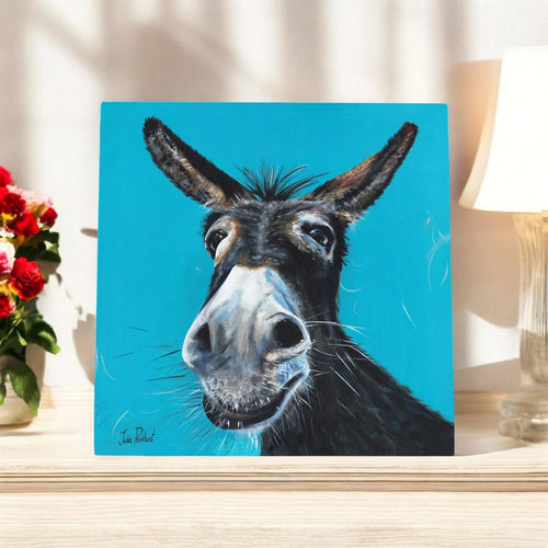 Elvis the Donkey Ceramic Art Tile by Pankhurst Gallery 20x20 cm – Wall Hanging Decor in Gift Box