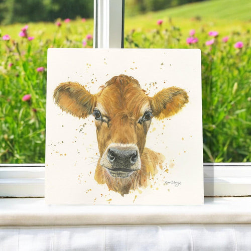 Jersey Cow Ceramic Art Tile by Bree Merryn - 20x20cm Ready to Hang - Farmhouse Rustic Wall Art Decor
