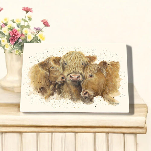 Cuddly Coos Highland Cow Ceramic Art Tile by Bree Merryn 30X20 cm | Rustic Farmhouse Wall Art Ready to Hang
