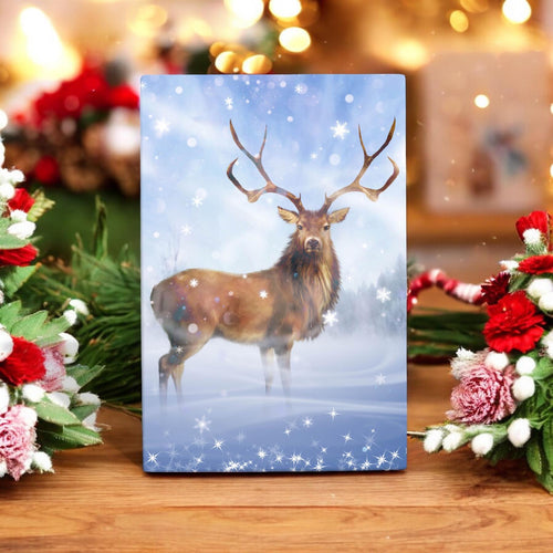 DEER IN THE SNOW Ceramic Wall Art Tile 30x20cm by R. Fathers - Winter Wildlife Stag Scene, Ready to Hang, Home Decor Gift