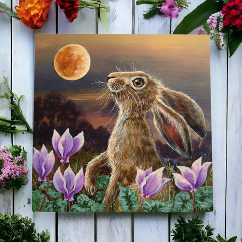 Judith Yates LUNA HARE Ceramic Tile 20x20cm | Hand-Painted Wall Art, Whimsical Nature Decor, Collectible Hare Design | Boxed Ready for Gifting