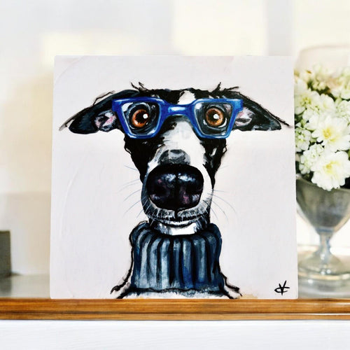 Basil Ceramic Art Tile by Victoria Coleman | 20x20cm | Ready to Hang | Unique Dog Portrait | Home Decor Gift | Dog Lover's Art