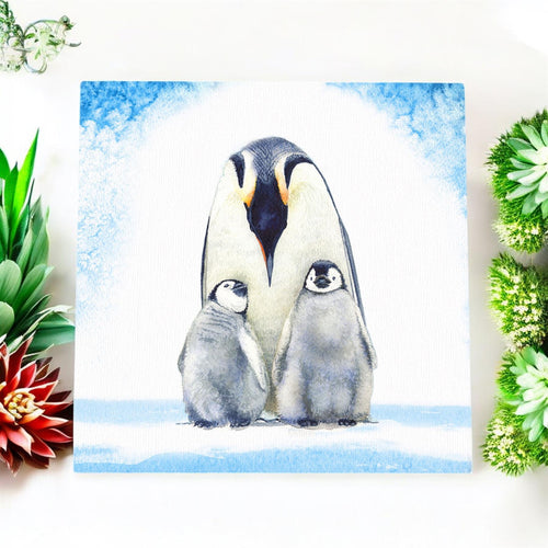 Winter Penguins Art Tile by S. Jones - Handcrafted Ceramic Wall Décor 20x20cm - Ready to Hang