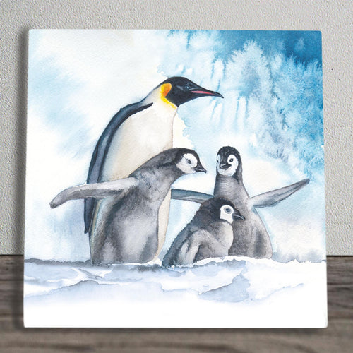 WINTERS PENGUIN FAMILY Ceramic Art Tile by S. Jones - 20 x 20 cm - Wall Decor"