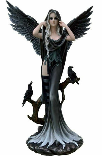 Large Dark Gothic Angel and Raven Companion Sculpture Statue Mythical Creatures