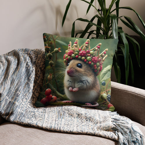 Royal Mouse Cushion - Adorable Field Mouse with Berry Crown Decorative Throw Pillow