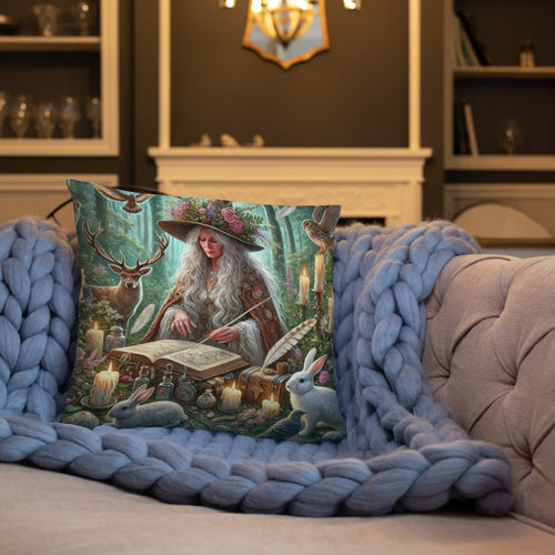 Mystical Forest Witch Cushion - Enchanting 18" x 18" Wiccan Decor, Magical Nature Pillow