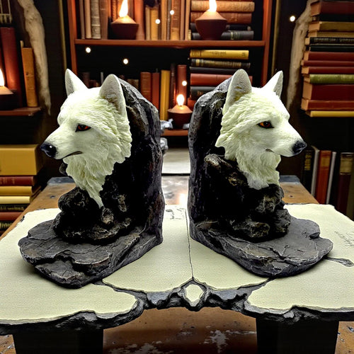 Majestic Wolf Bust Bookends Wildlife Ornament Animal Lovers Gift Rustic Display