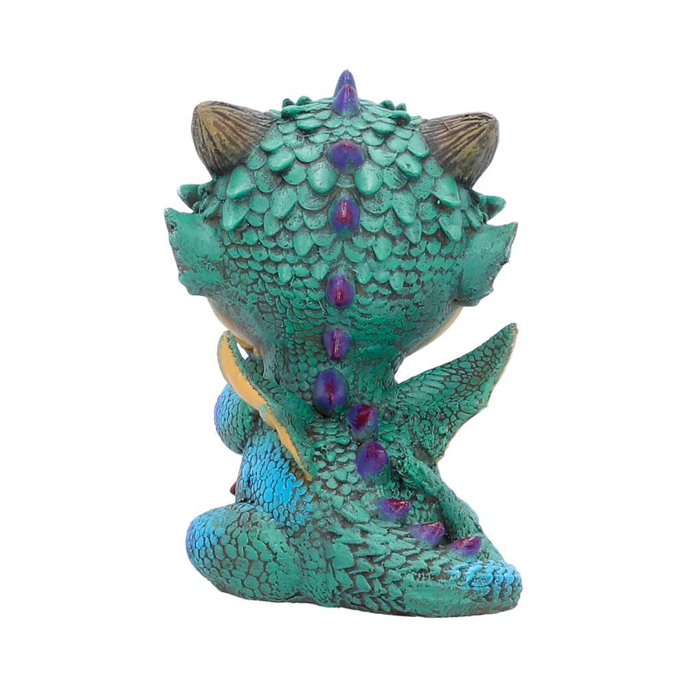 Sitting upright with wide, curious eyes and gently clutching a detailed red rose, Cinders captures that magical blend of innocence and fantasy charm. The vibrant green, blue and golden tones are expertly hand-painted to highlight every textured scale, delicate wing and expressive feature.