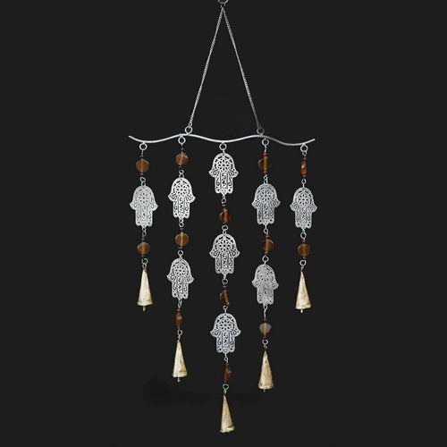 Großes Windspiel mit Hamsa- und Fatima-Händen, spirituelle Hängedekoration, Geschenk, 75 cm