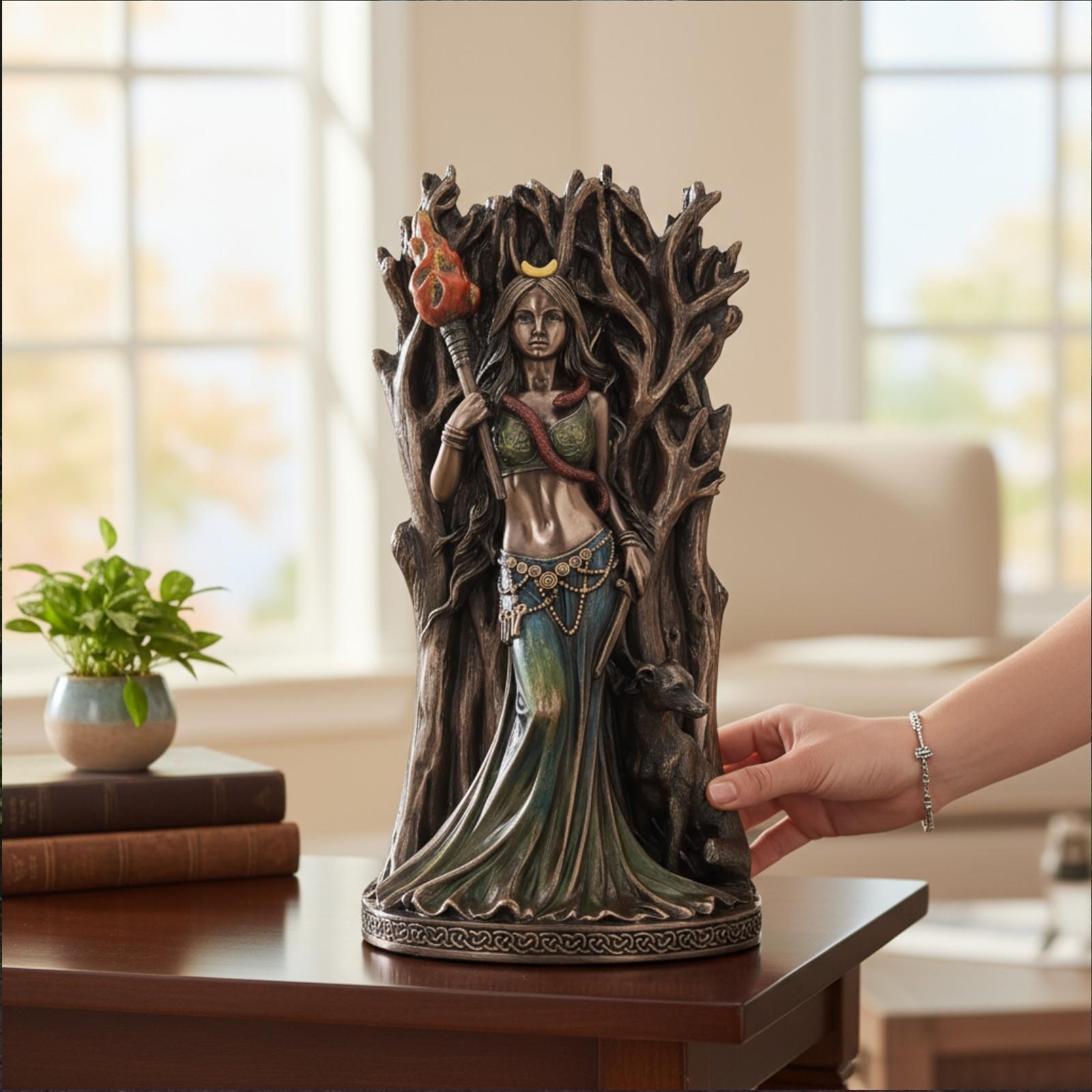 Honor the Goddess Hekate, the powerful Greek deity of magic, crossroads, and transformation, with this captivating bronze-effect figurine.