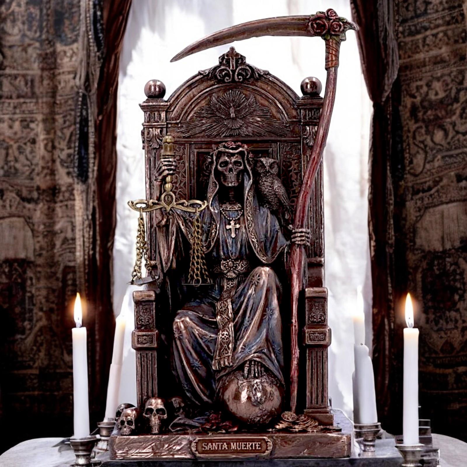 Santa Muerte's Throne 22cm – Gothic Bronze Figurine | Day of the Dead Saint of Death Statue