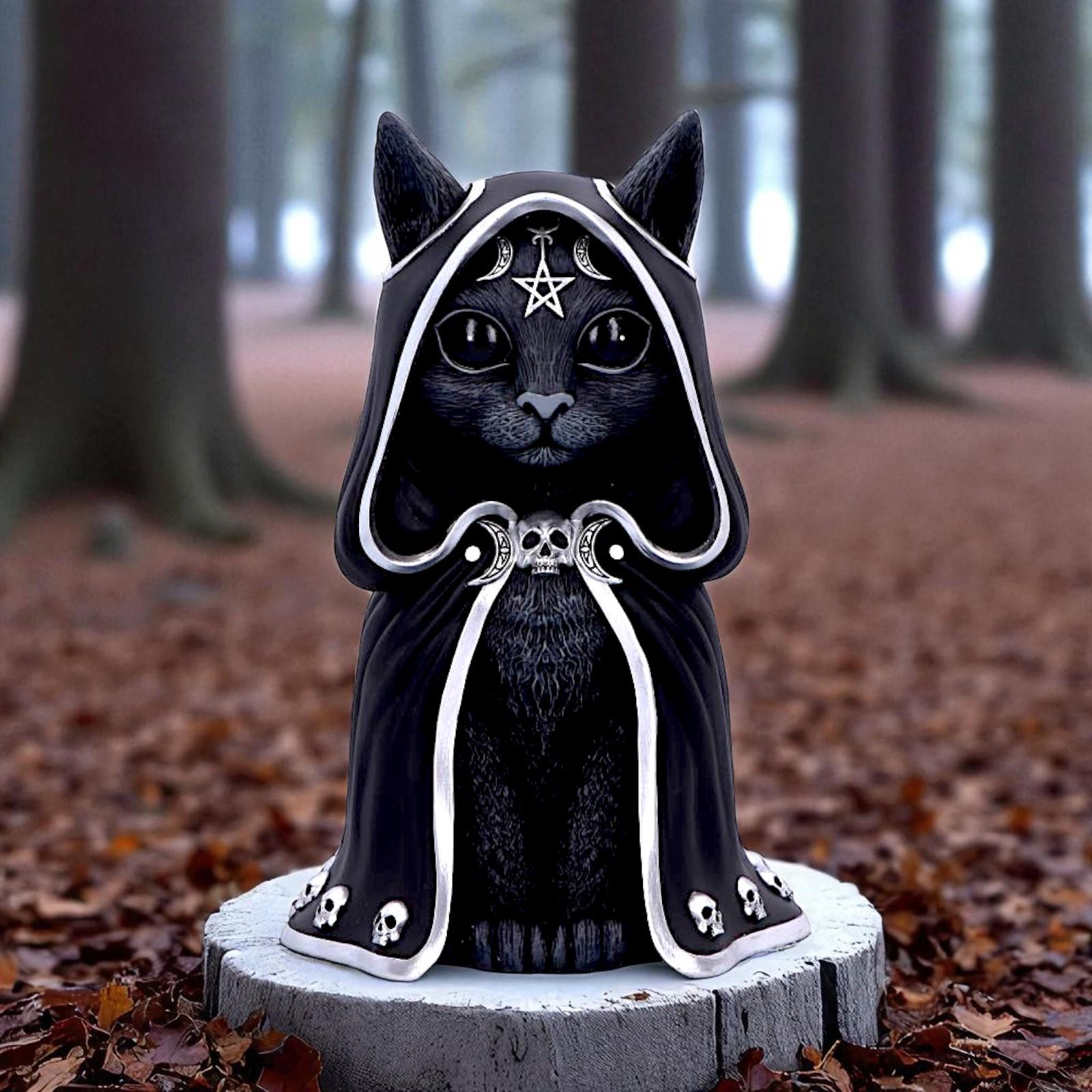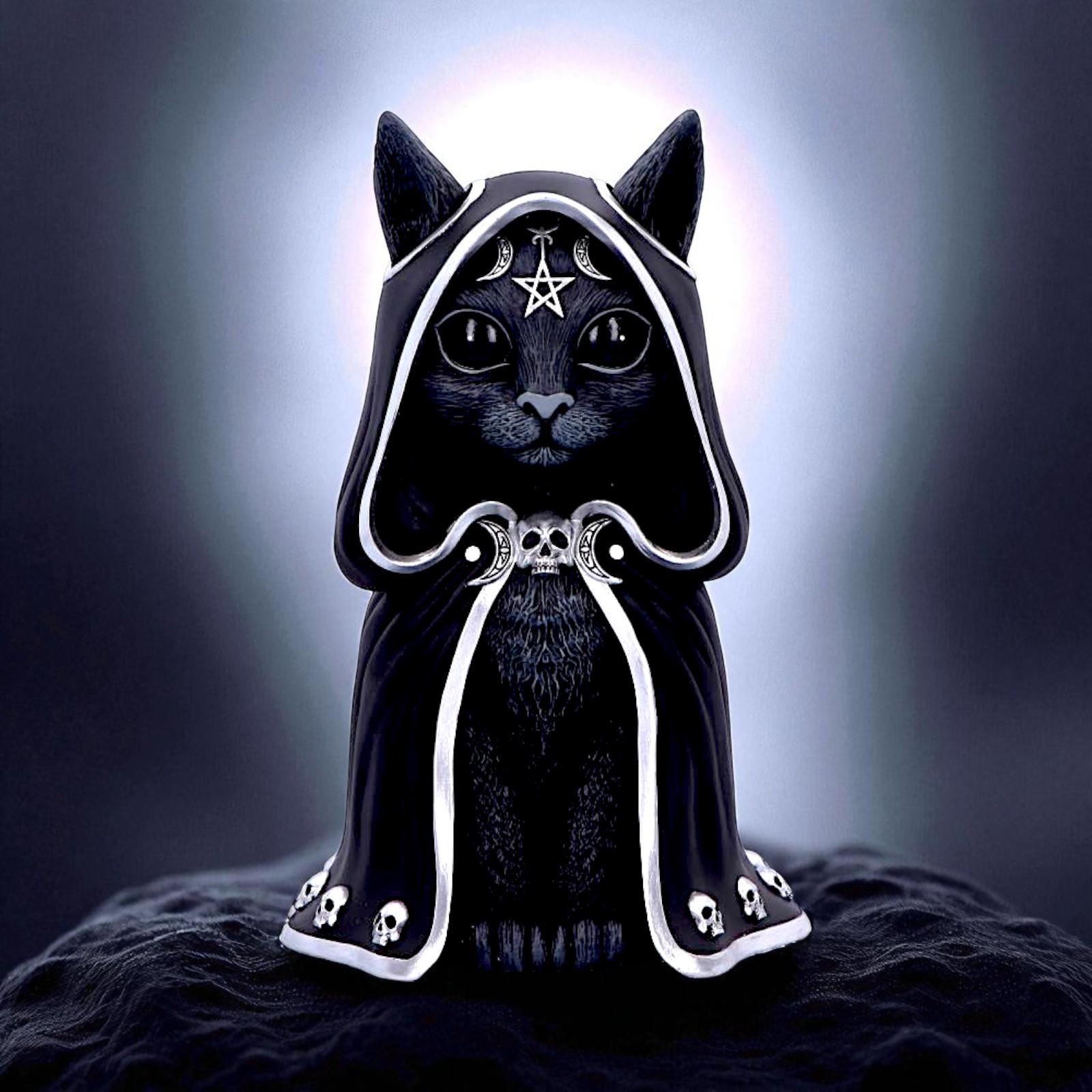 Unleash your dark side with Zefur, a bewitching figure from Nemesis Now’s adored Cult Cuties collection. Standing at 23.2cm, this gothic black cat is cloaked in a flowing black robe, intricately adorned with silver occult symbols, pentagrams, skulls, and crescent moons — radiating dark magic and mystery.