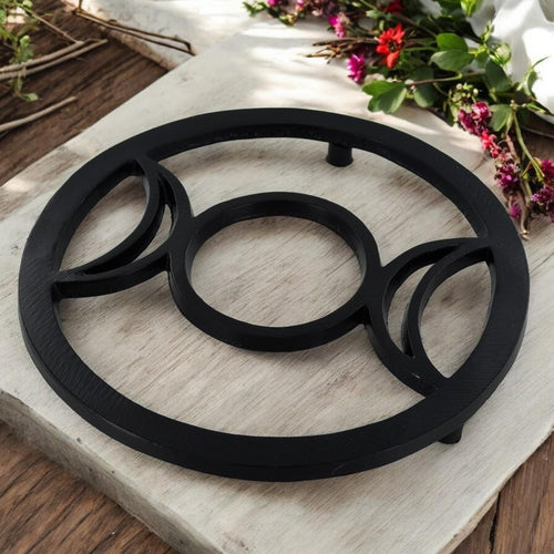 Triple Moon Goddess Aluminium Trivet - Pagan Altar Wiccan Decor