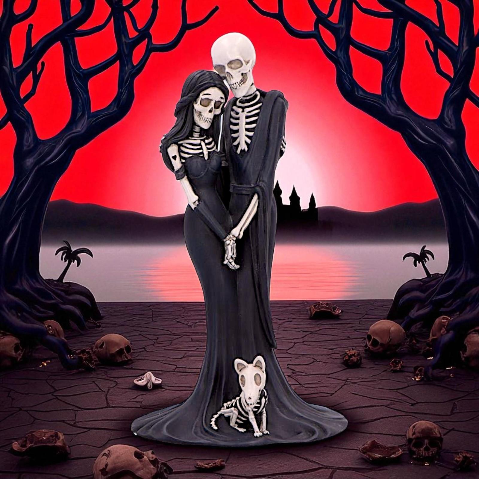 Gothic Skeleton Embrace Figurine Couple & Dog Everlasting Macabre Fantasy Art