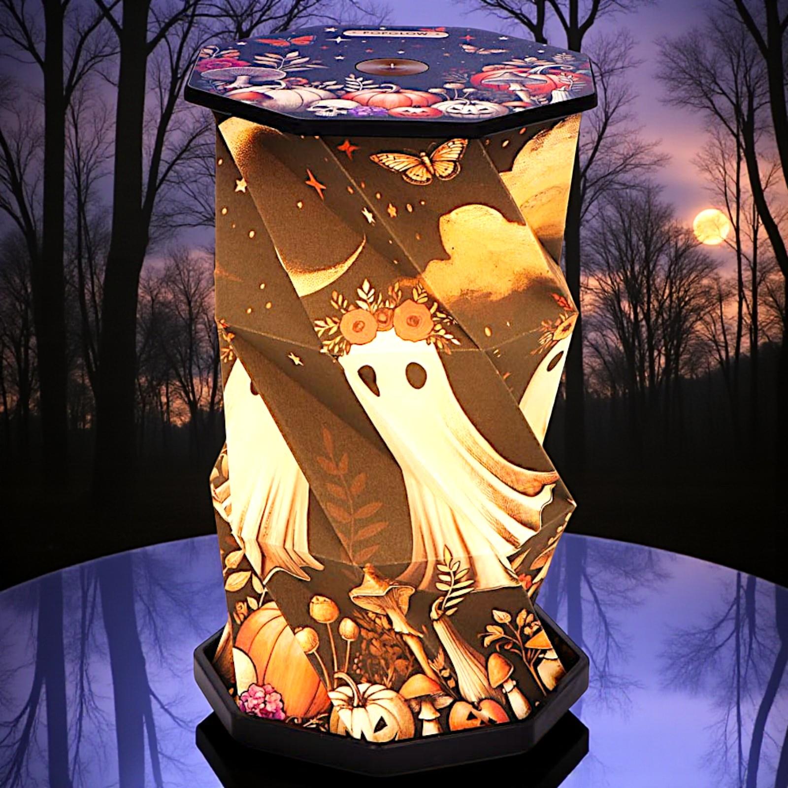 Illuminate your space with the Harvest Haunting Foldable LED Lamp, a stunning blend of Halloween charm and cozy autumn warmth. This beautifully designed lamp features enchanting ghost illustrations surrounded by pumpkins, leaves, and moonlit skies — creating a comforting yet mysterious glow perfect for seasonal ambience.