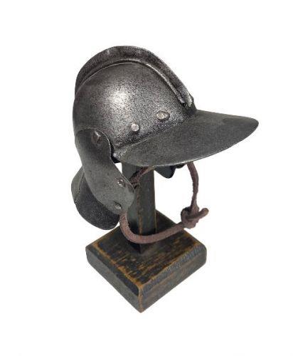 Bring medieval history to life with this finely crafted 11cm Miniature Knight Helmet. Made from sturdy metal and mounted on a wooden base, this replica captures the intricate details of traditional knight armor. Whether you're a history enthusiast or simply love unique decor, this miniature knight helmet adds a touch of nobility to any space. Ideal for displaying on shelves, desks, or as a part of a medieval-themed collection, this helmet is both a conversation starter and a decorative masterpiece.