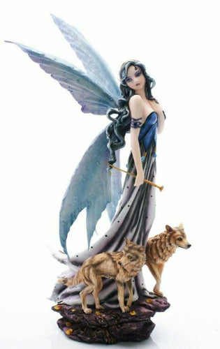 Fairy and Wolf Companion Figurine Fantasy Fairies Figure Mythical Sculpture
