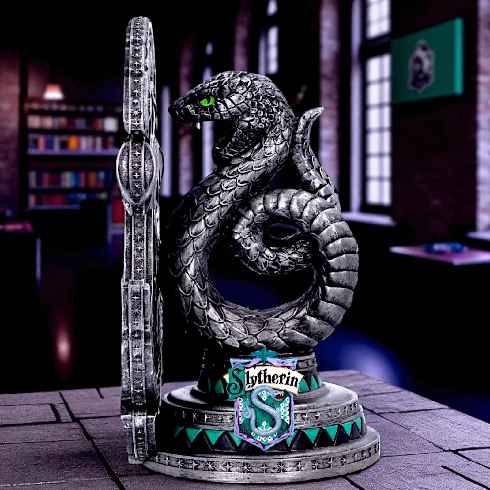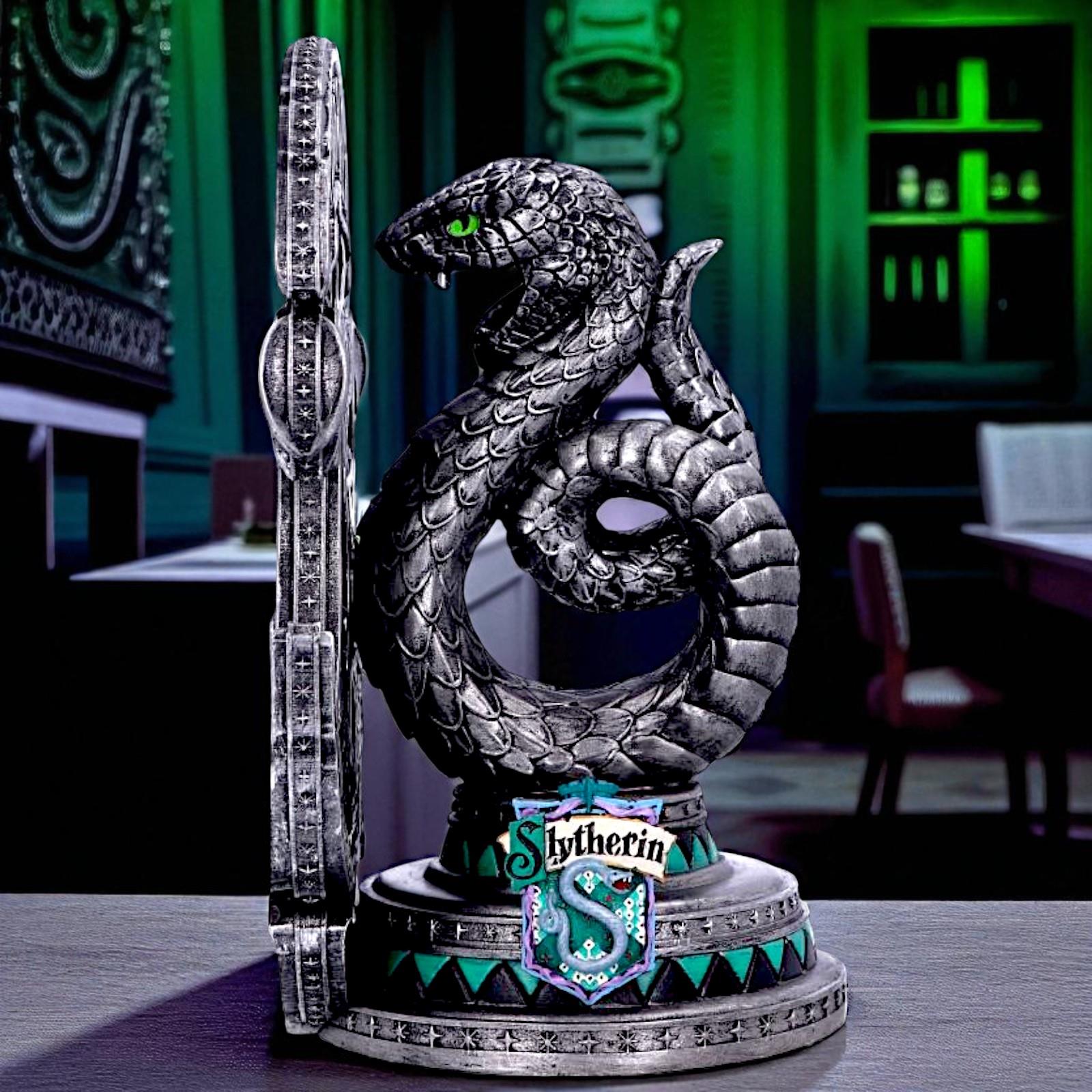 Add a touch of Hogwarts magic to your shelves with this Official Harry Potter Slytherin Bookend, standing proudly at 20cm. Crafted from high-quality resin, this intricately detailed piece features the iconic Slytherin serpent coiled around the house crest in silver and green, with vibrant emerald eyes. Whether you're a proud member of Slytherin or simply a collector of Harry Potter memorabilia, this functional and decorative bookend is a must-have. Perfect for holding your spellbooks or novels in place, this item makes an ideal gift for fans of the Wizarding World.
