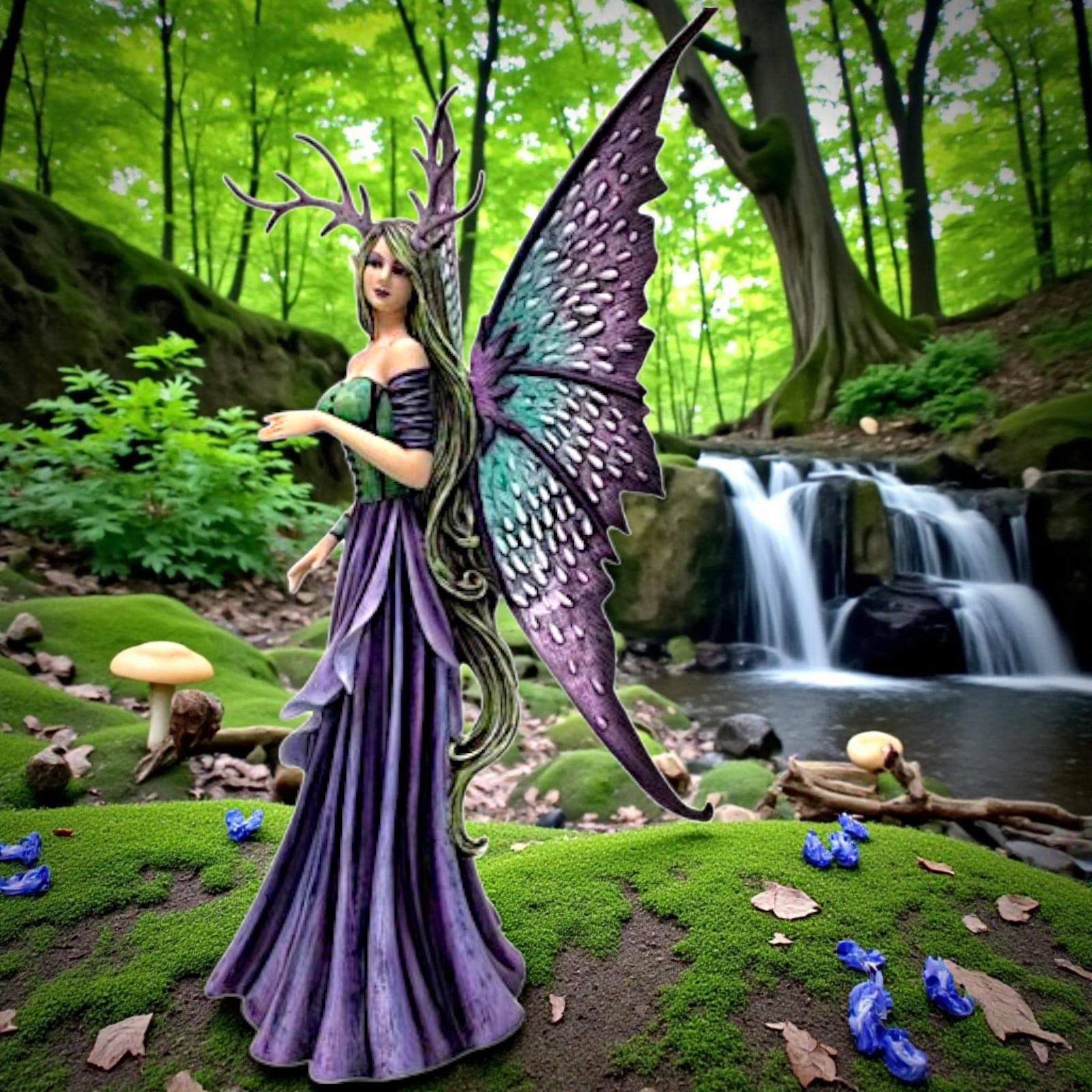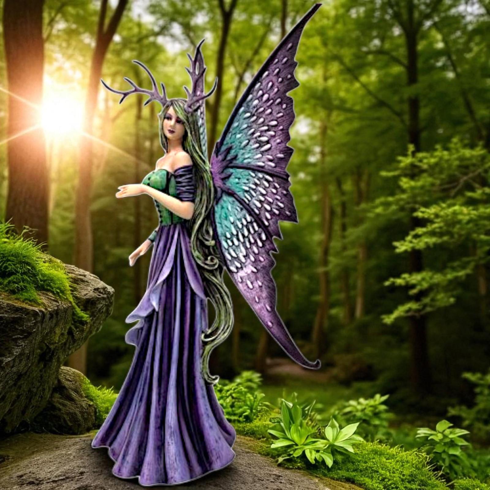 Step into a world of magic and mystery with this breathtaking Fairy with Horns Figurine, a true masterpiece of fantasy art. Standing gracefully with detailed antlers and iridescent butterfly wings, this elegant fairy captures the ethereal beauty of the enchanted forest.